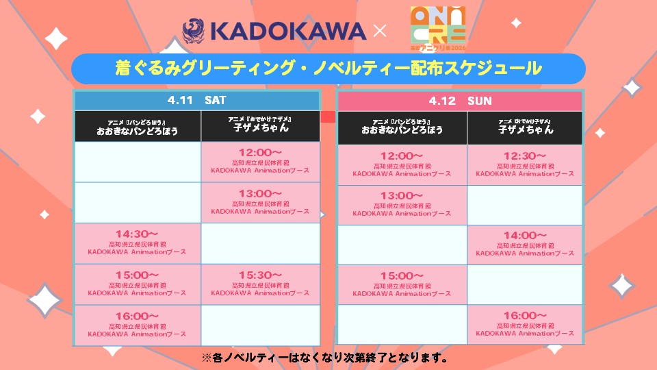 4月11日12日高知県にて開催されます高知アニクリ祭2026にKADOKAWAAnimationブース出展致します。